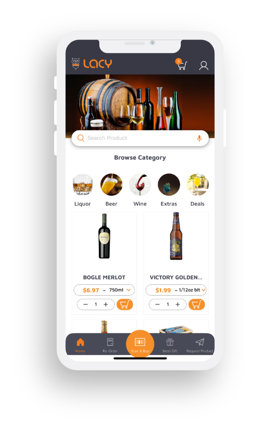 Navigate lacy effortlessly & scroll through different Products and add to your cart with one touch.
